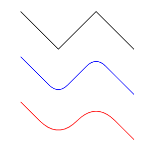 Beyond basic primitives, you can of course draw arbitrary paths and style them easily. Here is a Polyline primitive that allows controlling the curvature with a smoothness factor.
